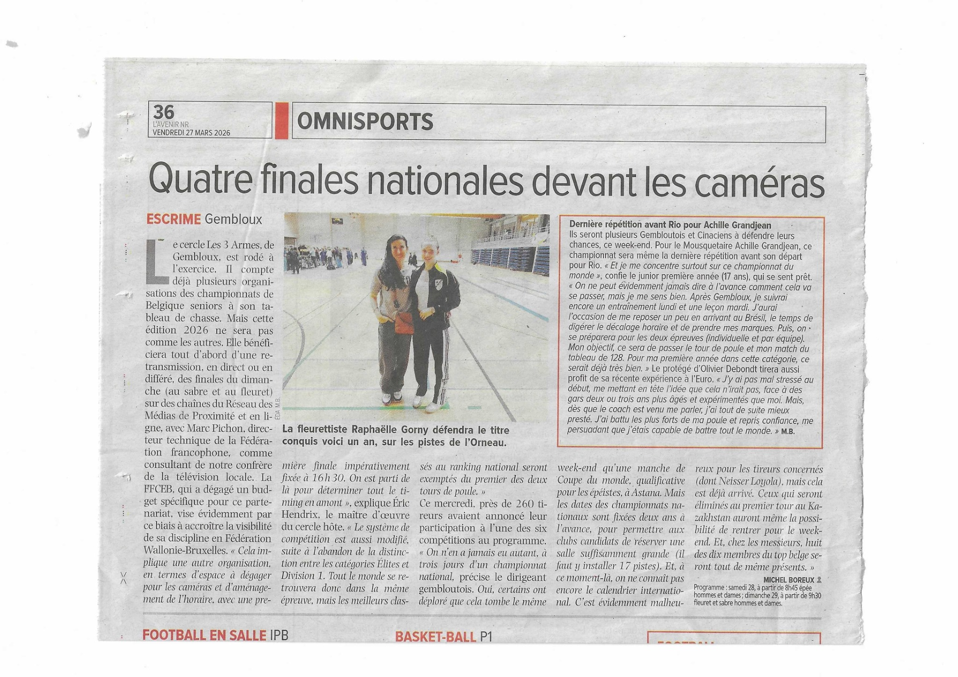 - Quatre finales nationales devant les caméras, Vers l'Avenir (27 Mars 2026)