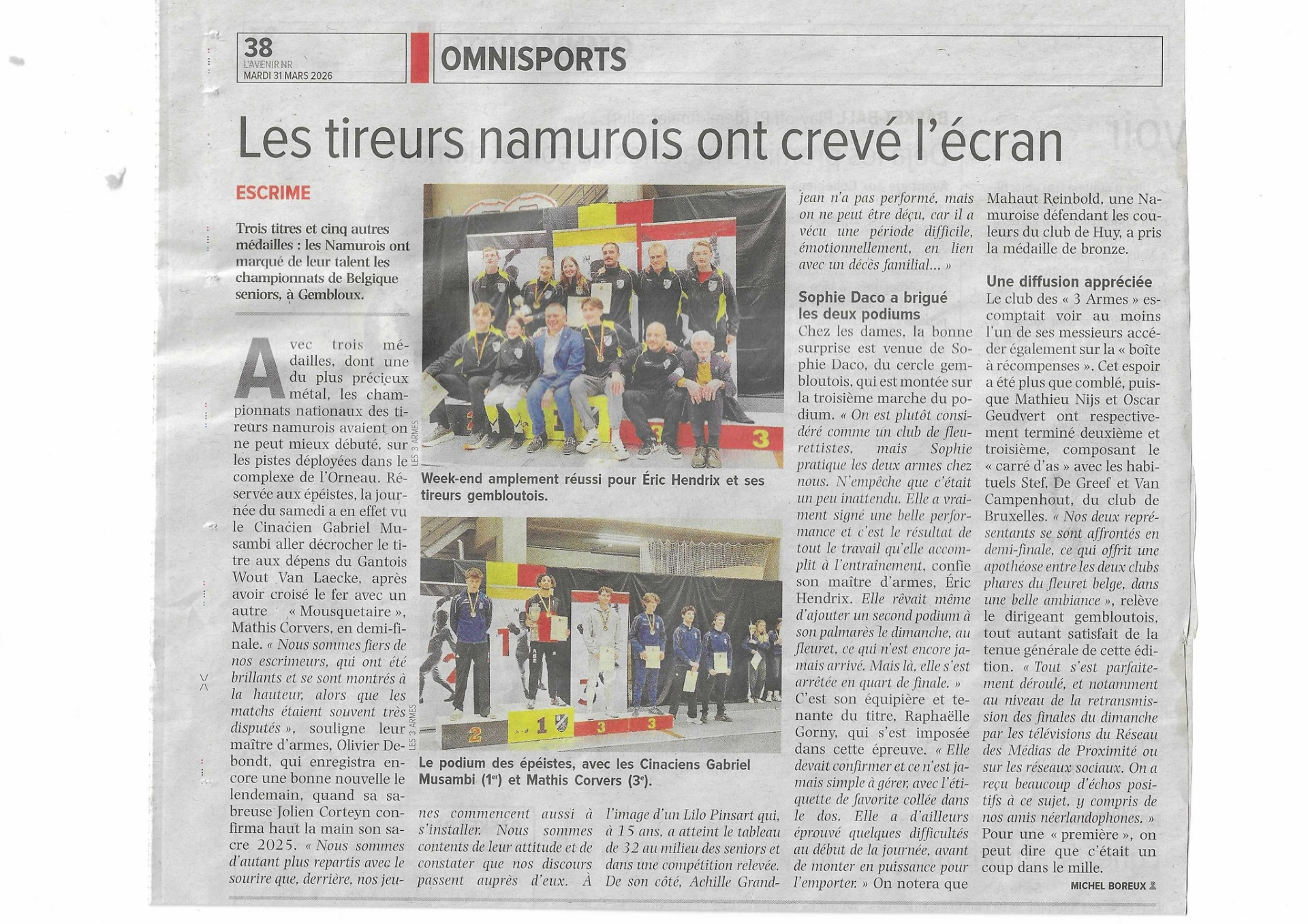 - Les tireurs namurois ont crevé l'écran, Vers l'Avenir (31 Mars 2026)